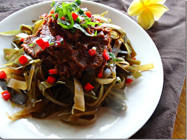 - Scoop onto your kelp noodles, and top with your choice of topping.